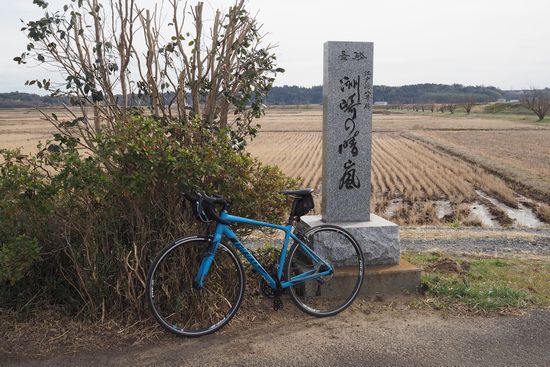 江戸崎総合高校の先にある「吹上の秋月」の碑。高台にあります。眼下の農地は、昔は榎ヶ浦という湖だった