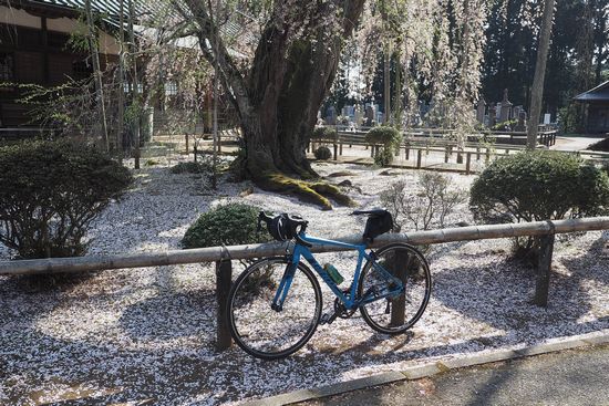 妙宣寺から僅かで長光寺に着きます。こちらの方がまだ花が残っていました。この桜は、樹齢三百年、幹の