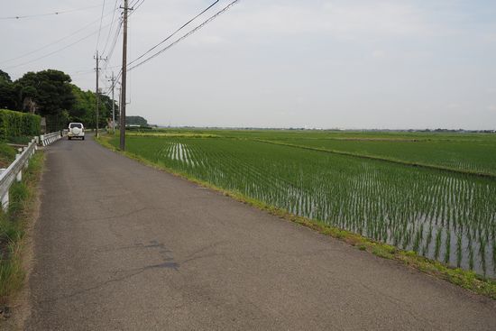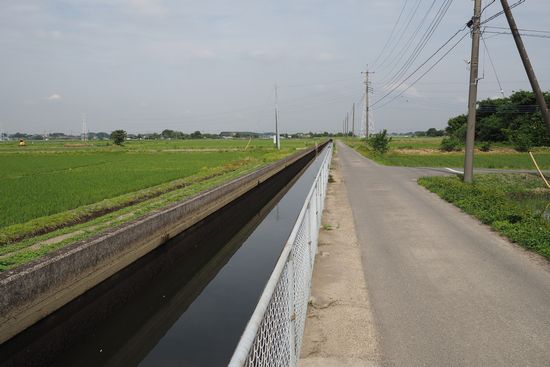 国道6号を注意して渡り直進してくると、道は水路に沿った農道になります。この後、左から車道が