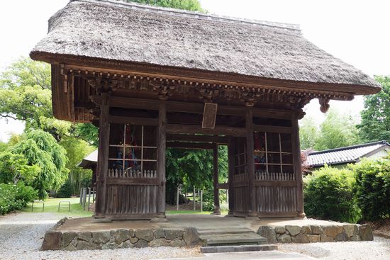 これは藁葺きの仁王門です。観音堂とともに県の文化財です。入口から見ると、イチョウが立ち塞がっていて