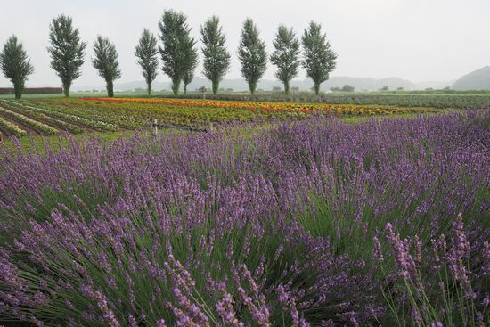 ラベンダー以外の花も植えられています。この構図は北海道の富良野みたいですね。
