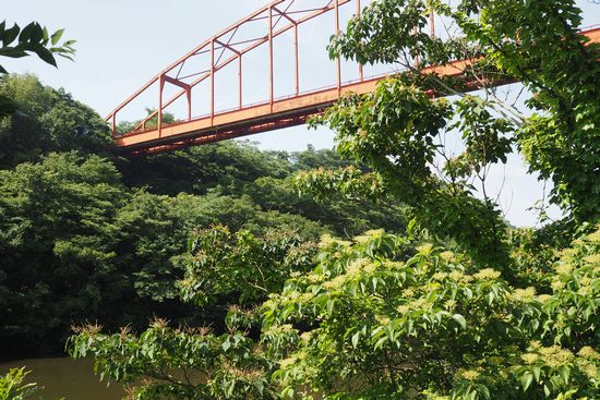 松崎工業団地内の道を創価学会脇に左折して道なりで谷津に下ります。谷津道はやがて阿宗橋近くの