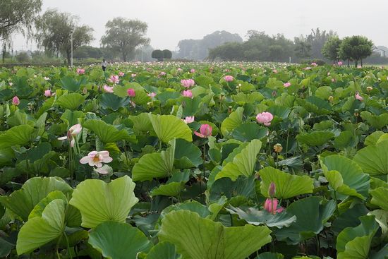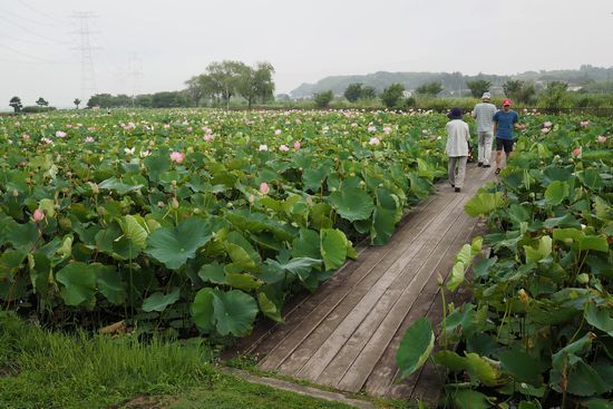 古代蓮はたくさん咲いていました。日曜なので、早朝から人が出ています。