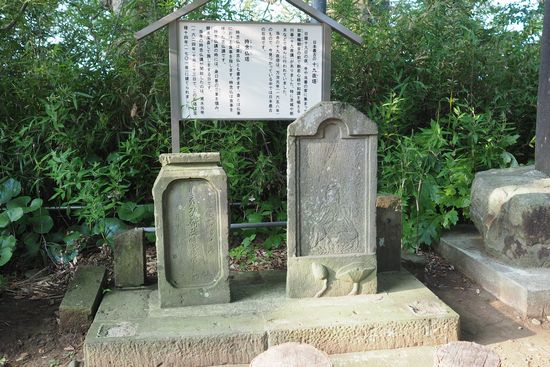 二つ並んだ碑の大きい方が、日本最古の十九夜塔。万治元年(1658年)の製作。十九夜講というのは、別名を