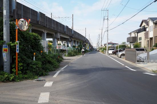 海老川を八栄橋で渡り、京葉高速線の下の側道を進みます。線路はこの先で地下に入ってしましますが、更に
