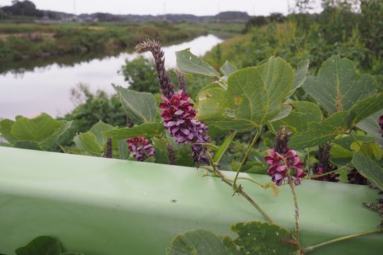 帰途、神崎川河口を渡る橋の傍らに、葛の花が咲いていました。