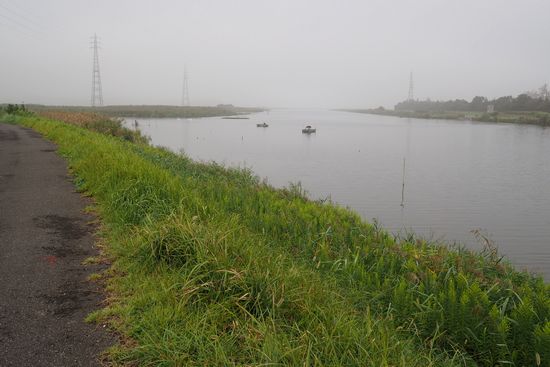 いつもは渡る関枠橋を渡らずに、手賀川南岸を発作橋に向かいます。霧で遠くは霞んでいます。