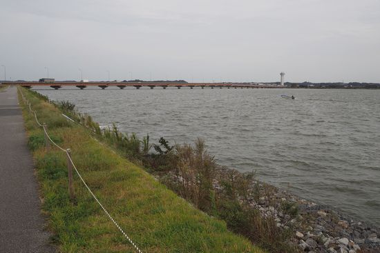 霞ヶ浦南岸を稲敷大橋方向に走ります。2016年には未舗装の部分がありましたが、今回は総て舗装されていました。
