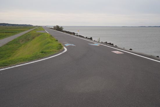霞ヶ浦大橋から東岸(正式には西浦左岸と言うらしい)を南下します。追い風です。途中に長い直線部分が有りました。