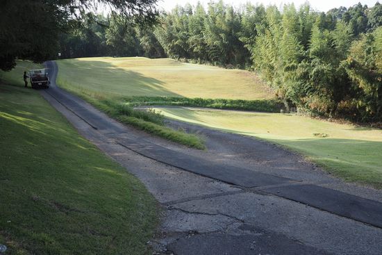 いんば学舎の前の道は総武CC北コースに突き当たります。コース内の道を下って谷津に出ます。