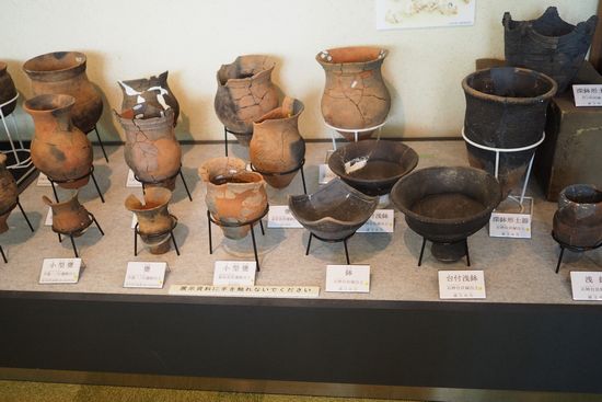 内部には縄文時代の古墳や遺跡からの出土品も展示されています。この中には戸ノ内貝塚からの出土品も