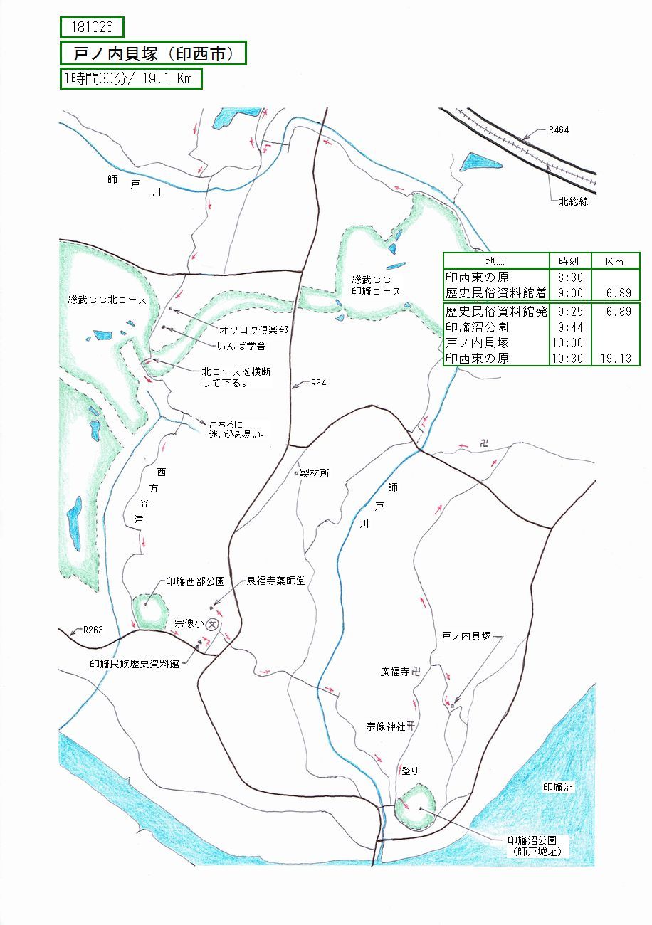 印西市内で貝塚はないものかとWebで調べると、戸ノ内貝塚なるものが見つかりました。それは師戸の海抜29m