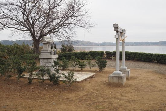 泊崎の岬の先端です。湖面の向こうの6号線方向が良く見えます。