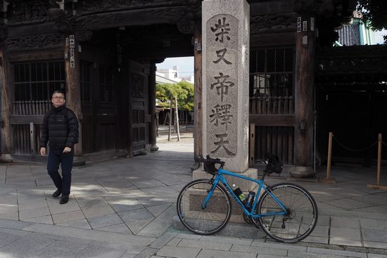 帝釈天脇を通るので、門前で記念撮影。なお、人物はたまたま写り込んだ観光客です。私はもっとかっこいい