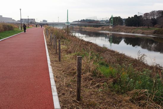 新川サイクリングロードをやって来て、前方にゆらゆら橋が見えてきました。