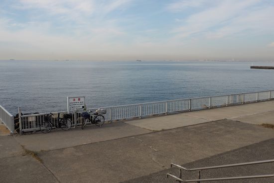 美浜大橋の下を潜って海に出ました。風が弱いので遠くはもやっています。肉眼だと微かに富士山が見える