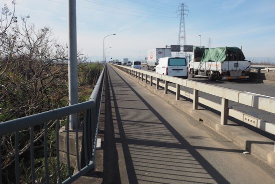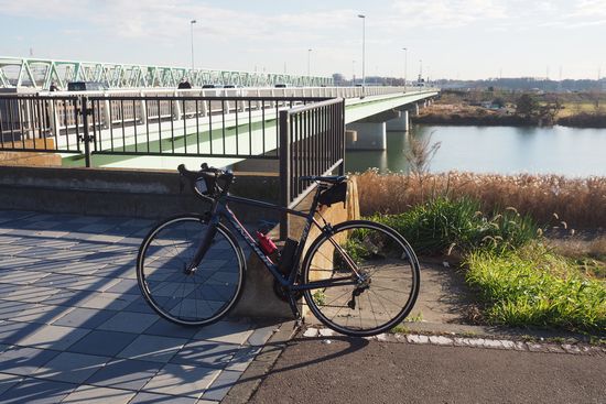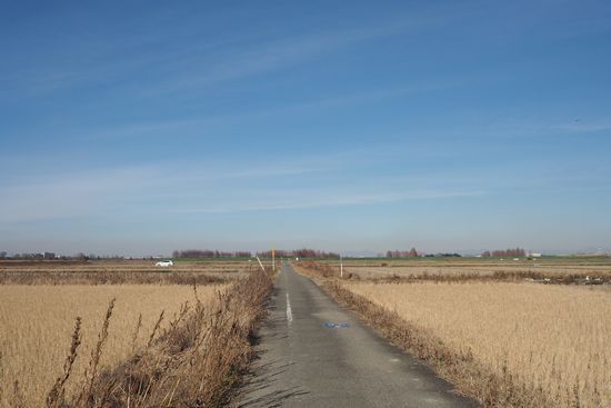 河川敷のCRを進みます。冬なのに北西の季節風が弱く、助かります。