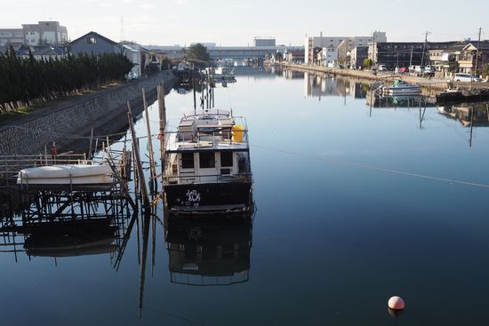 船橋の京葉道路の側道からの眺め。風が無いので、水面が鏡のようです。