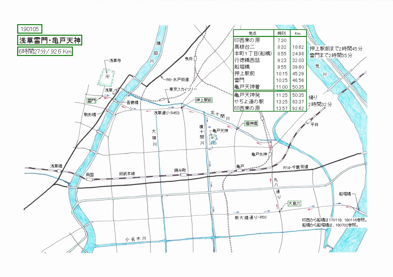 せっかく行くのだから、隅田川を越えて浅草も見てこよう、というのが今回のサイクリングです。ルートの殆どは180702を踏襲しま