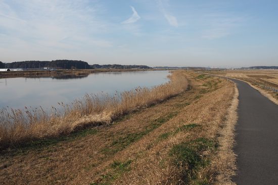 ここは手賀川沿いのサイクリングロードです。