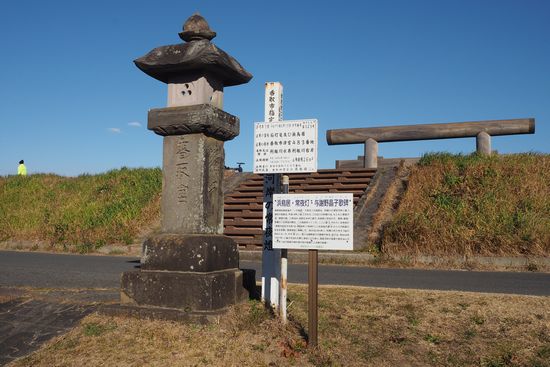 津宮の浜鳥居まで来ました。傍らに立つ常夜灯です。明和6年(1769年)に寄進されたもの。当時は行き交う