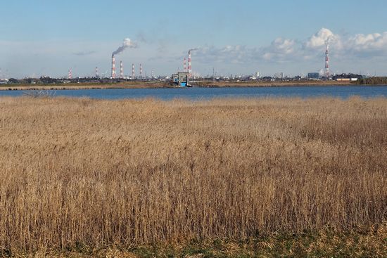 小見川大橋を過ぎると、対岸に工場群が見えてきます。