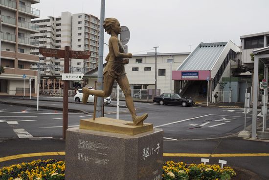 京成佐倉の南口から線路を渡り、北口に来ます。ランナーの像があります。ここはジョギングの「有森