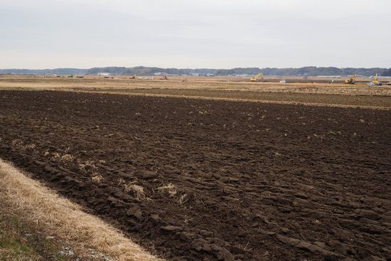 長い坂を下り切ると、中央排水路に沿った広い農地に出てきます。印旛沼を埋め立てた農地です。