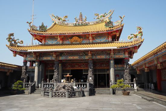 前殿の奥に本殿が見えています。道教の神様が祀られています。
