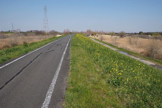 上江橋から入間大橋に向かうサイクリングロード。撮影の意図は、菜の花が沢山咲いていたため。