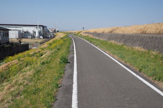 これが入間川自転車道。土手の上ではなく、土手の中段に設けられています。 なので、川が見えません。