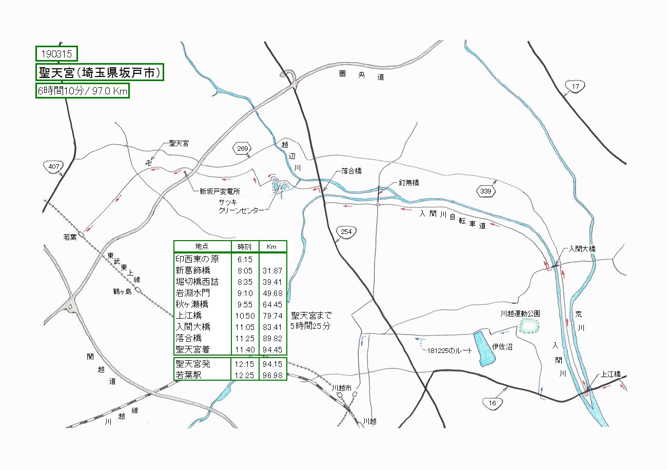 ルートですが、荒川CRの上江橋までは181225と同じです。そこから更に川沿いに入間大橋まで進み、入間川自