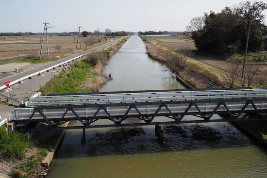 若草大橋からの道は、かなり高い位置を通る橋で新利根川を越えます。この新利根川沿いの道は、霞ヶ浦