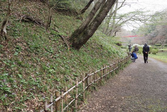 入口から少し下って菖蒲園に来ました。この斜面に、写真では判り難いですが、カタクリの群落があります。