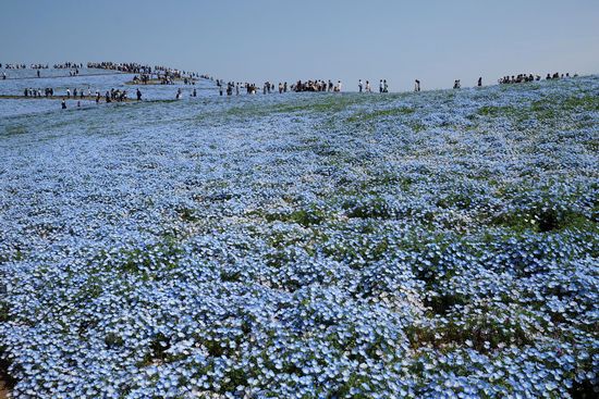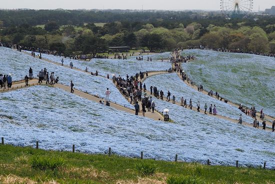 幾千の 人々碧き 道登り 空に溶けゆく ネモフィラの丘