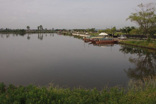 潮来あやめ園の横は前川になっています。シーズン中の水・土・日曜日には、ここで嫁入り船の実演が見られます。
