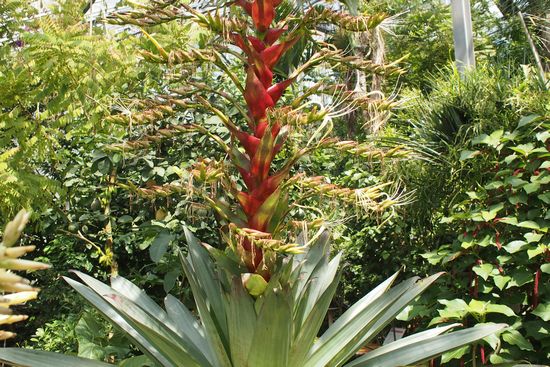 これは皇帝アナナスといい、ブラジルの固有種です。赤く上に伸びているのが花です。標高1200から2000mの