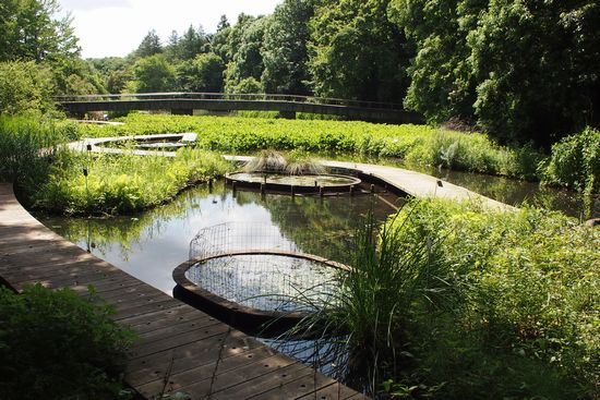 水生植物の区画です。商業主義的植物園なら沢山の菖蒲で埋め尽くすところでしょうが、ここは