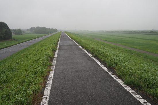 江戸川CRに出るころから霧雨が降ってきました。ここは関宿滑空場の横です。
