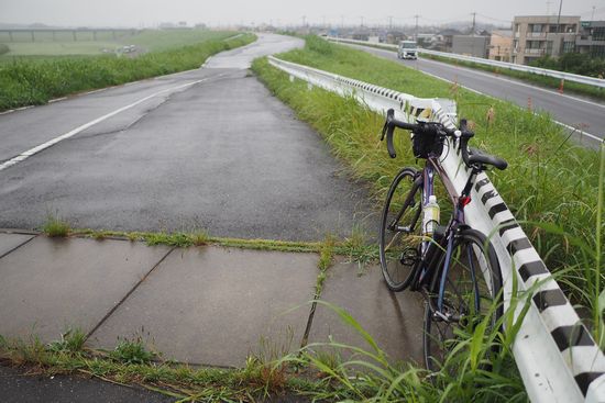 道遠く パンク修理の 我が肩に 雨降り注ぐ 江戸川の土手
