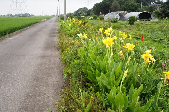 若草大橋を渡ってきて、R11の手前の農道に左折します。カンナの花が咲いていました。ここに来る