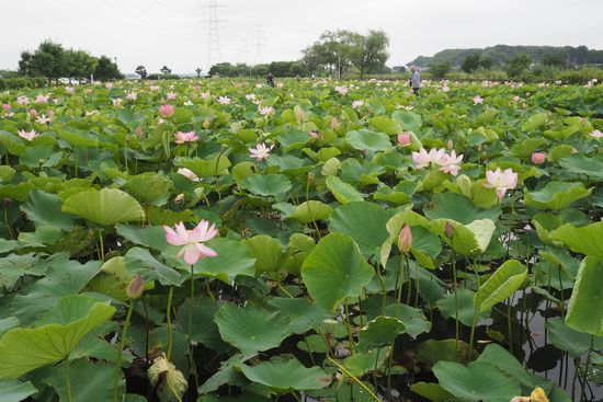 利根親水公園に着きました。古代蓮はたくさん咲いていました、