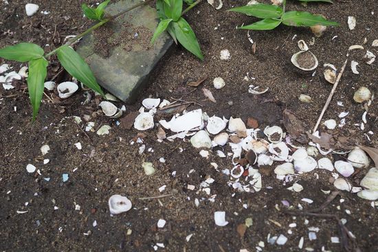 神社の境内には、あちこち縄文の貝が露出しています。この貝の上を日本武尊が歩いたかも