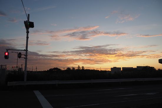 我家からすぐに国道464に出られます。国道に出たら、朝焼けが綺麗だったので撮影。空に露出が合っているので