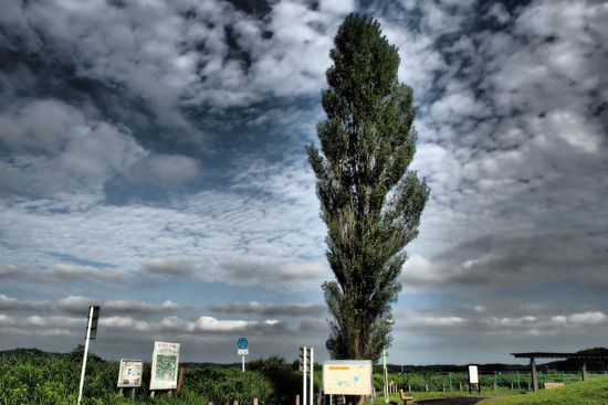 聳え立つ 一本ポプラ 何想う 流れる雲に 北国を恋う