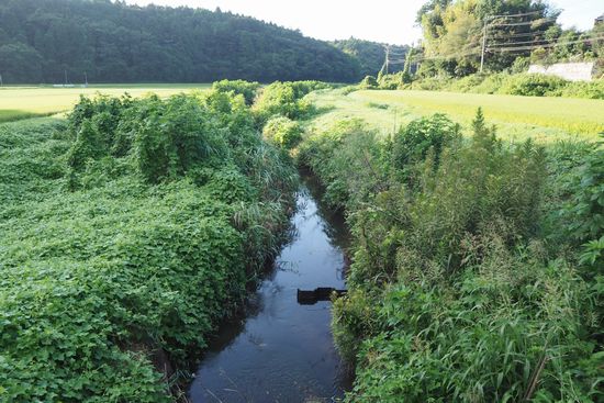 三里塚、芝山町方向は、ほたる橋を渡らず右岸を行きます。この写真は、ほたる橋から上流方向。