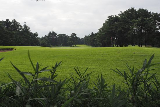 道の左側のゴルフコースを撮影。