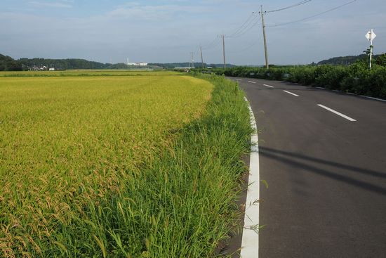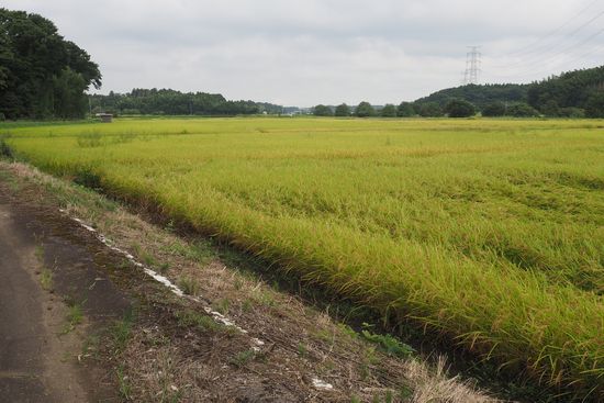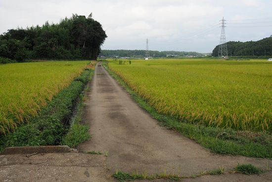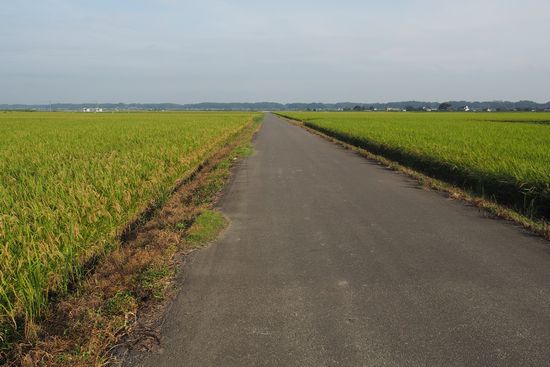 ふれあい橋(万歳橋から四つ目)で、新利根川を離れ、稲田の中の道を行きます。