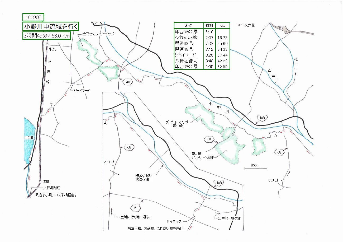 小野川下流(国道408の東)は、江戸崎、霞ケ浦に行く際に、何度か通ったことがありますが、それより西の中流域を走っ