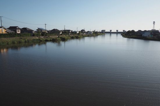 だいぶ下流に来ました。国道125の新利根橋で左岸に渡ります。橋の上から河口水門を撮影。あそこまで